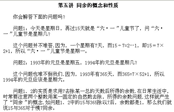 五年級奧數下冊:第五講 同余數的概念和性質